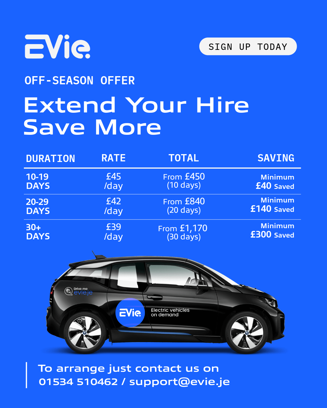 EVie is offering a special off season extended hire rate. Please contact our team to obtain pricing and schedule the booking.